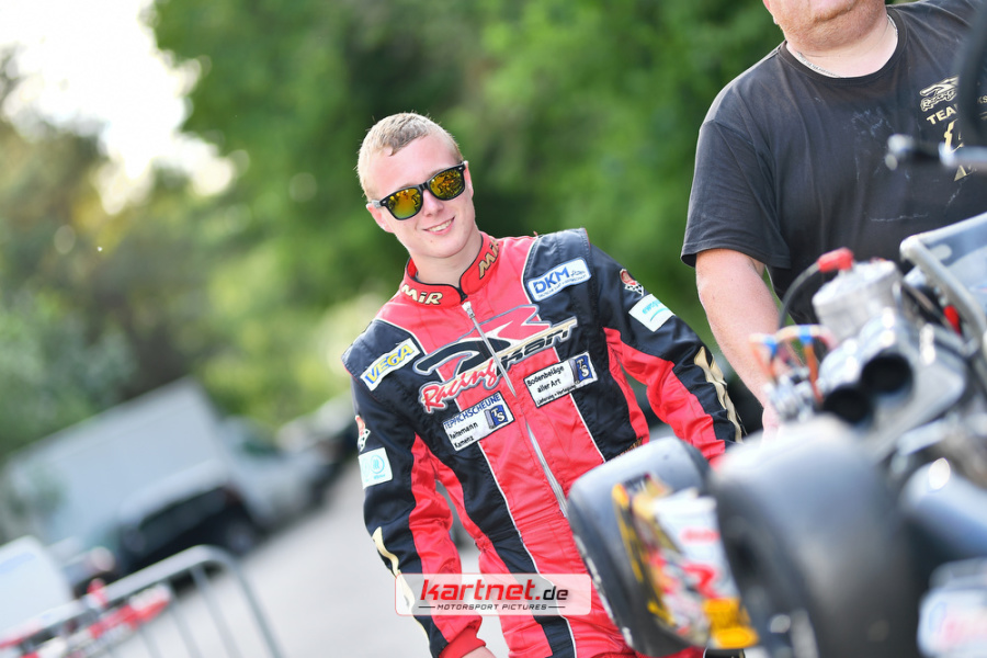 Der 17-jährige Routinier Rick Hartmann hatte dabei noch die besseren Karten. In seiner Klasse der Schaltkartfahrer (DSKC) ging die maximal mögliche Anzahl an Startern - 34 - an den Start, so dass bis
